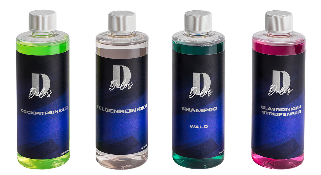 Das Dulos Autopflege Set bietet dir vier leistungsstarke Produkte für eine professionelle und schonende Fahrzeugpflege – innen wie außen. Egal ob Felgen, Lack, Scheiben oder Cockpit: dieses Set sorgt für perfekte Sauberkeit, starken Glanz und ein gepflegtes Finish auf allen Oberflächen.