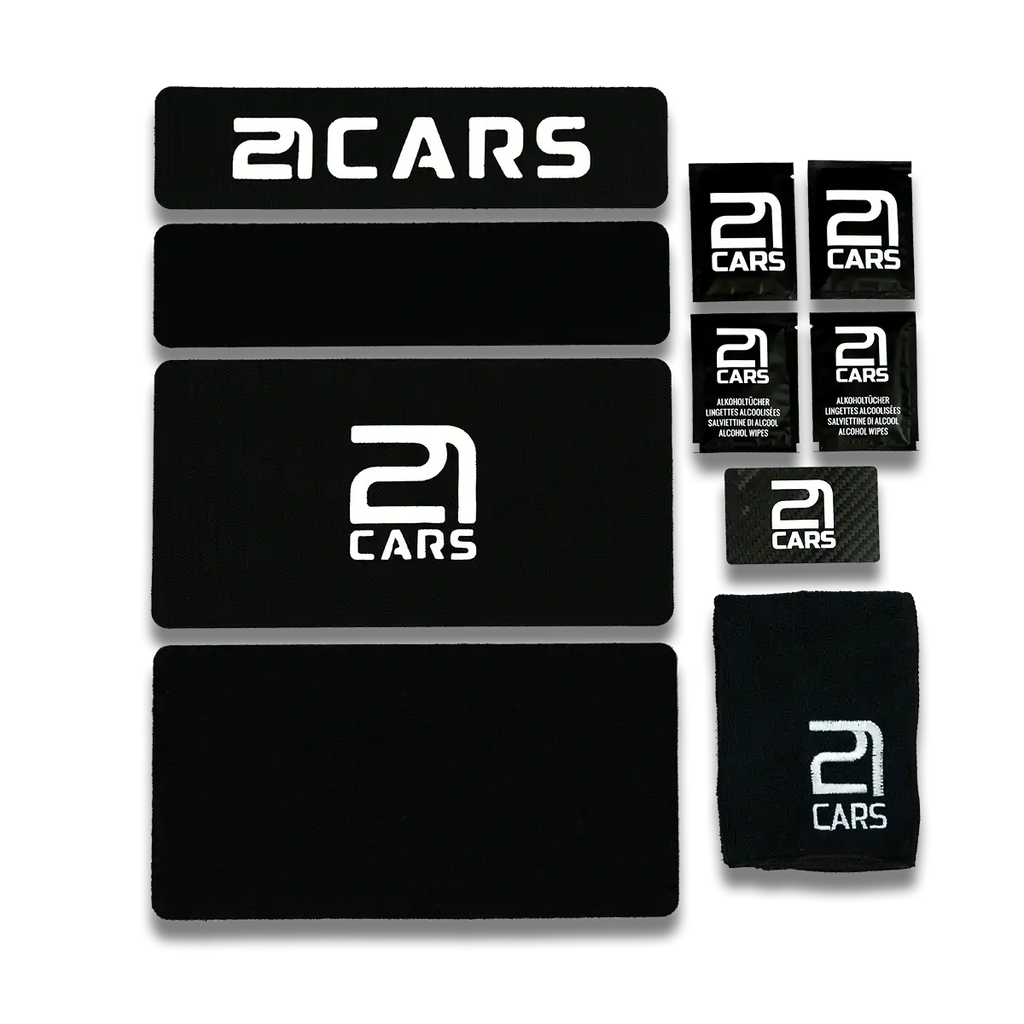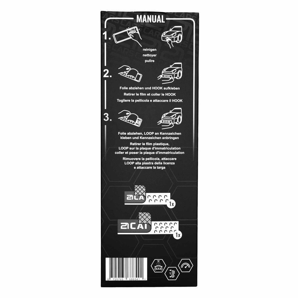 Universal Klett-Kennzeichenhalter von 21Cars® bietet dir eine ästhetische Lösung für all deine Fahrzeuge ohne Rahmen. Unser selbstklebendes Hochleistungs-Klettband ist im Handumdrehen montiert. Ein Set beinhaltet alles, was du für ein Fahrzeug benötigst. Dank unseren ultradünnen Klett ist kaum etwas sichtbar. Die 21Cars® Kletthalter sorgen für ein extrem coolen, cleanen Look und bieten sichere und flach anliegende Autonummern - ohne hervorstehende Kanten! Das Produkt ist für jede Witterungsverhältnisse ausgelegt und hält auch Geschwindigkeiten von über 300km/h stand. Egal ob als schönes Accessoire oder zum täglichen superschnellen Wechseln von einem Fahrzeug zum anderen ohne Kompromisse.