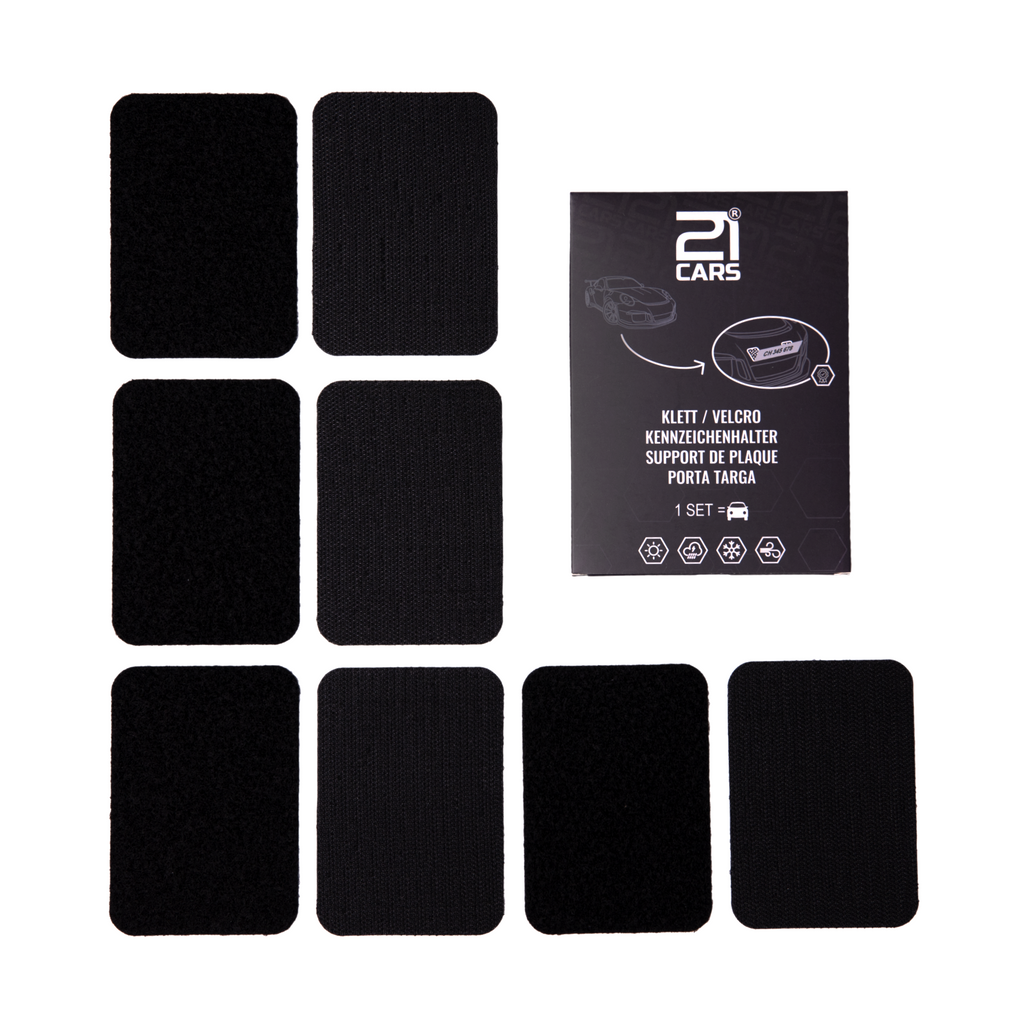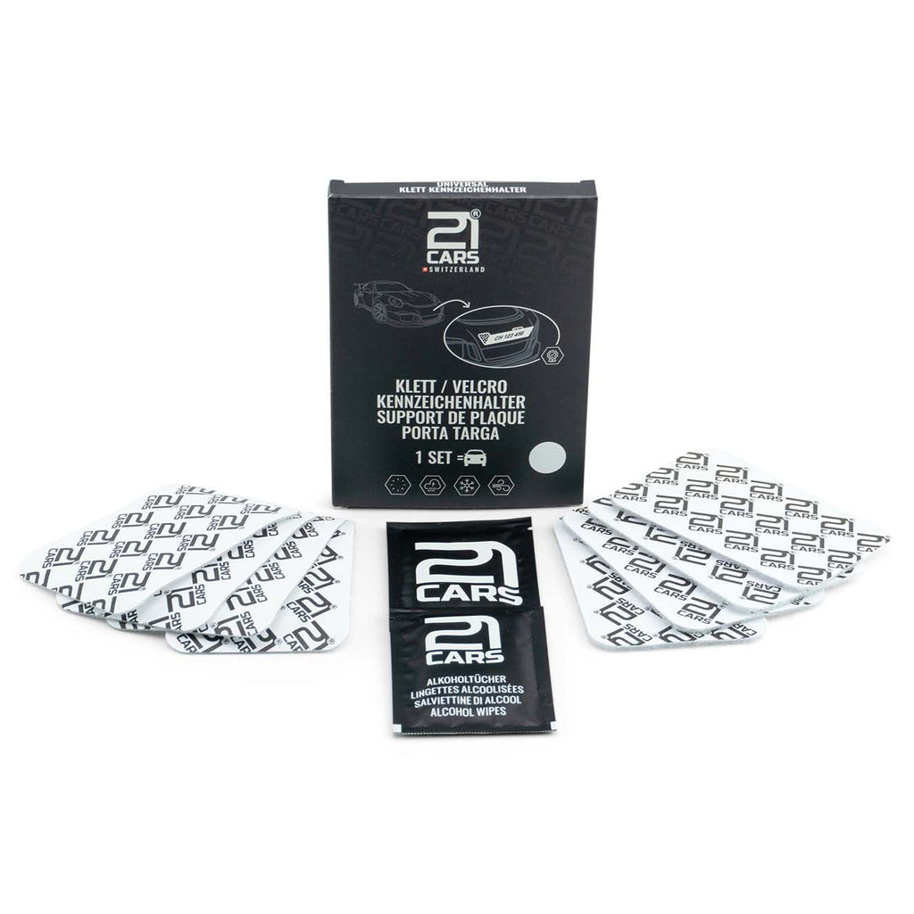 Universal Klett-Kennzeichenhalter von 21Cars® bietet dir eine ästhetische Lösung für all deine Fahrzeuge ohne Rahmen. Unser selbstklebendes Hochleistungs-Klettband ist im Handumdrehen montiert. Ein Set beinhaltet alles, was du für ein Fahrzeug benötigst. Dank unseren ultradünnen Klett ist kaum etwas sichtbar. Die 21Cars® Kletthalter sorgen für ein extrem coolen, cleanen Look und bieten sichere und flach anliegende Autonummern - ohne hervorstehende Kanten! Das Produkt ist für jede Witterungsverhältnisse ausgelegt und hält auch Geschwindigkeiten von über 300km/h stand. Egal ob als schönes Accessoire oder zum täglichen superschnellen Wechseln von einem Fahrzeug zum anderen ohne Kompromisse.